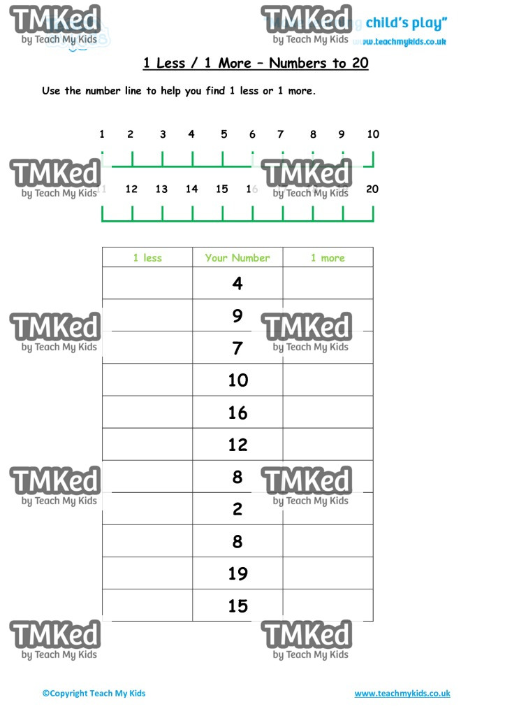 Use the number line to help you find 1 less or 1 more.