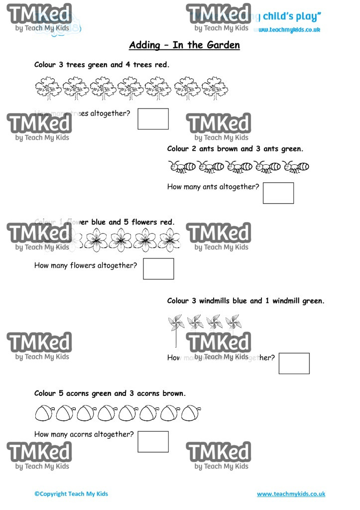 Colour 3 trees green and 4 trees red.