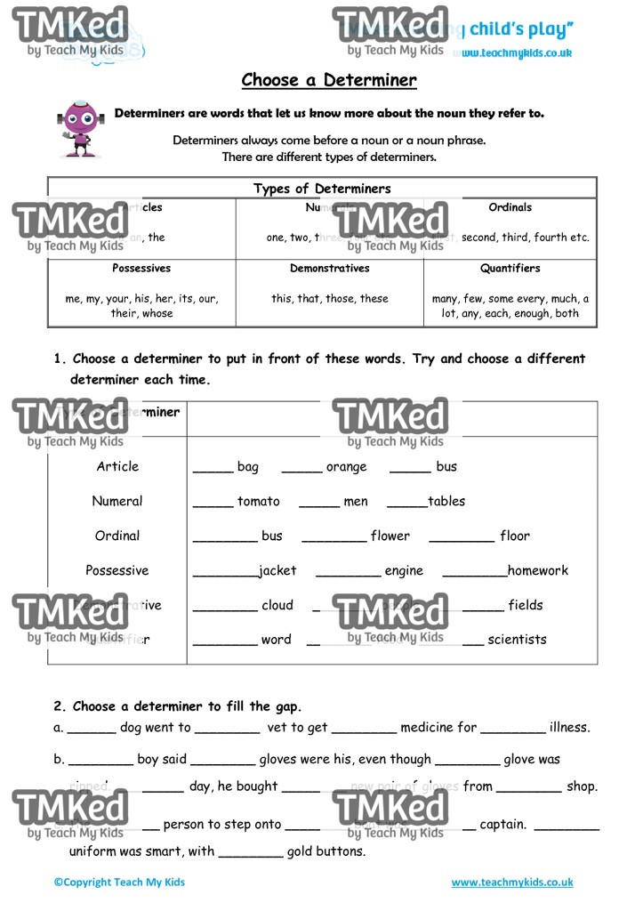 Choose a determiner to put in front of these words. Try and choose a different determiner each time.