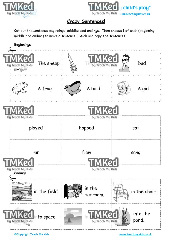 Cut out the sentence beginnings,middles and endings. Then choose 1 of each (beginning,middle and ending) to make a sentence. Stick and copy the sentences.