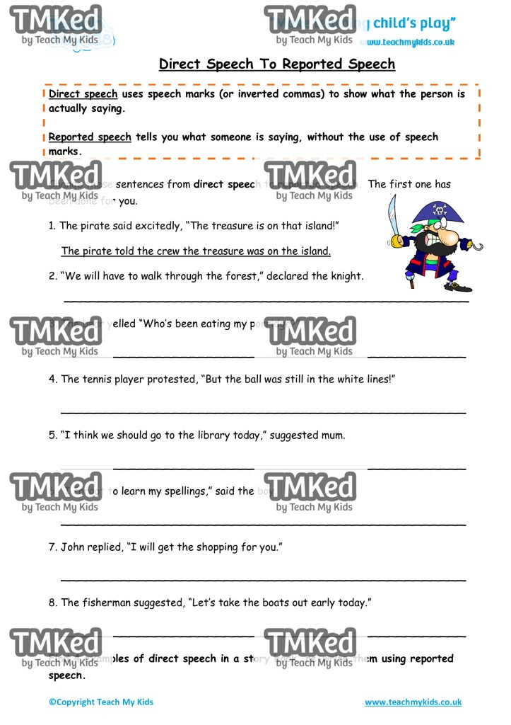 Change these sentences from direct speech to reported speech. The first one has been done for you.