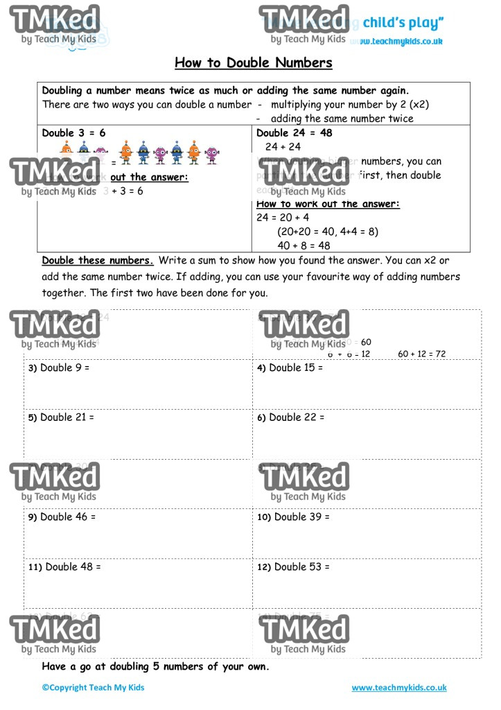 Doubling a number means twice as much or adding the some number again.