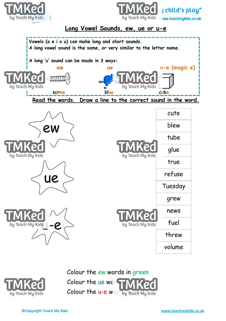 Read the words. Draw a line to the correct sound in the word.