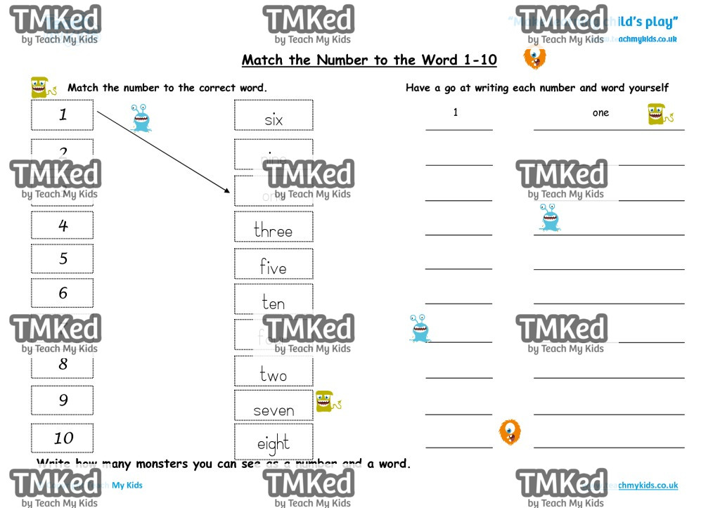 Match the number to correct word.