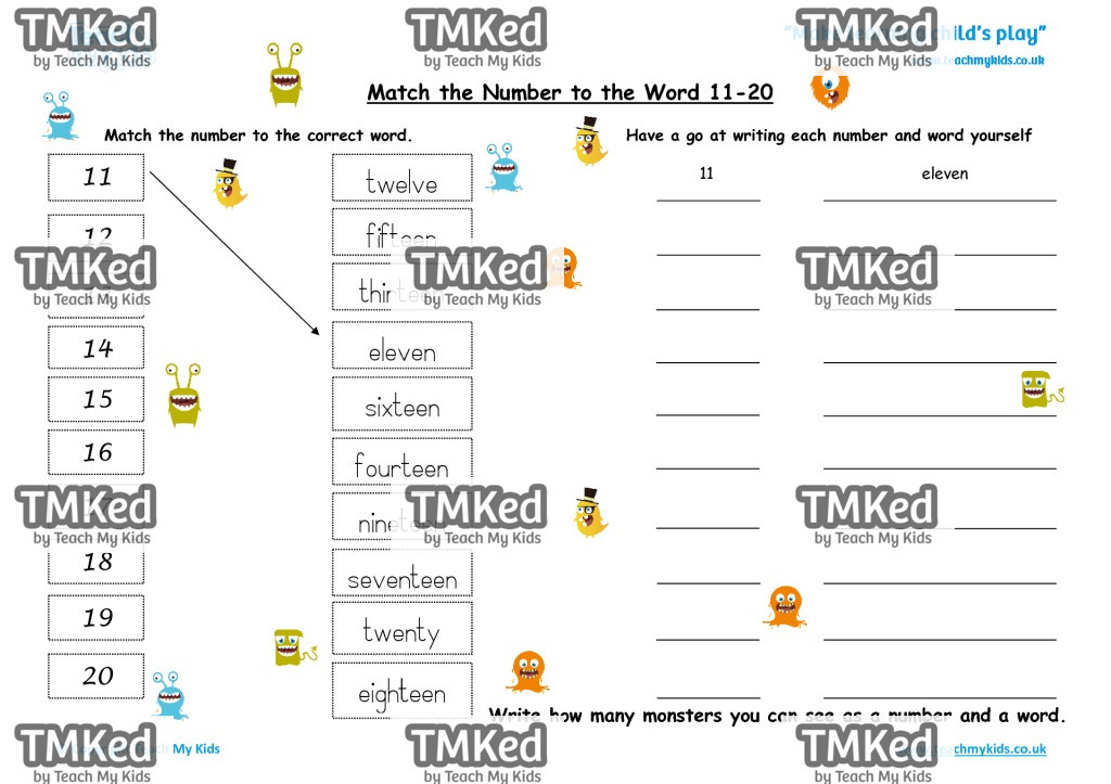 Match the number to correct word.