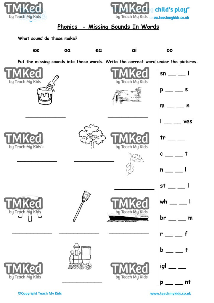 Put the missing sounds into these words. Write the correct word under the pictures.