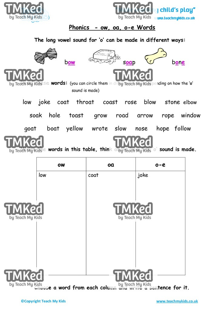 Write the words in this table, think about how the ‘O’ sound is made.