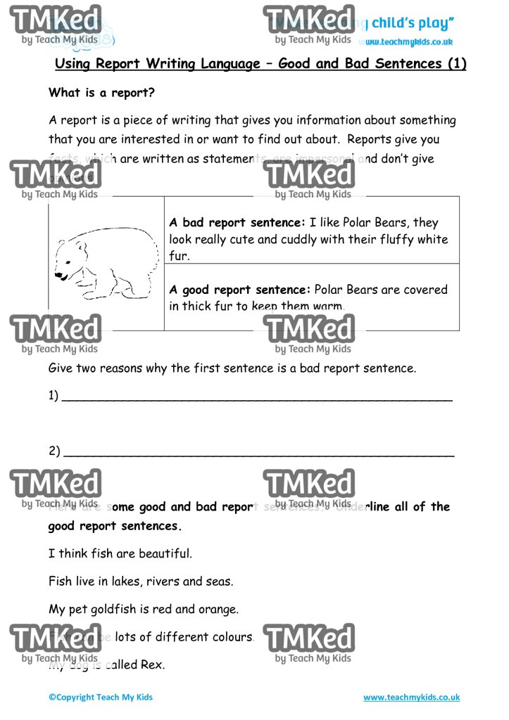 Here are some good and bad report sentences. Underline all of the good report sentences.