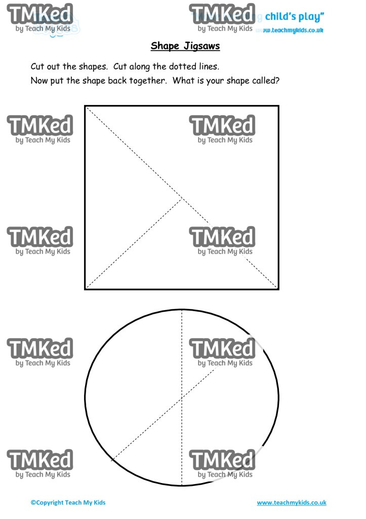 Cut out the shapes. Cut along the dotted lines. Now put the shape back together. What is your shape called?