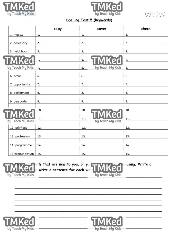 These spellings tests will help children learn to spell keywords and words with common spelling patterns. Covers National Curriculum requirements.