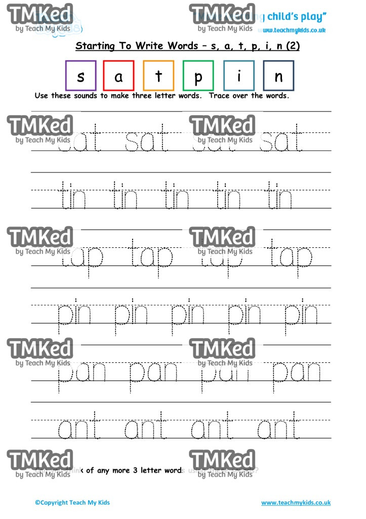 Use these sounds to make three letter words. Trace over the words.