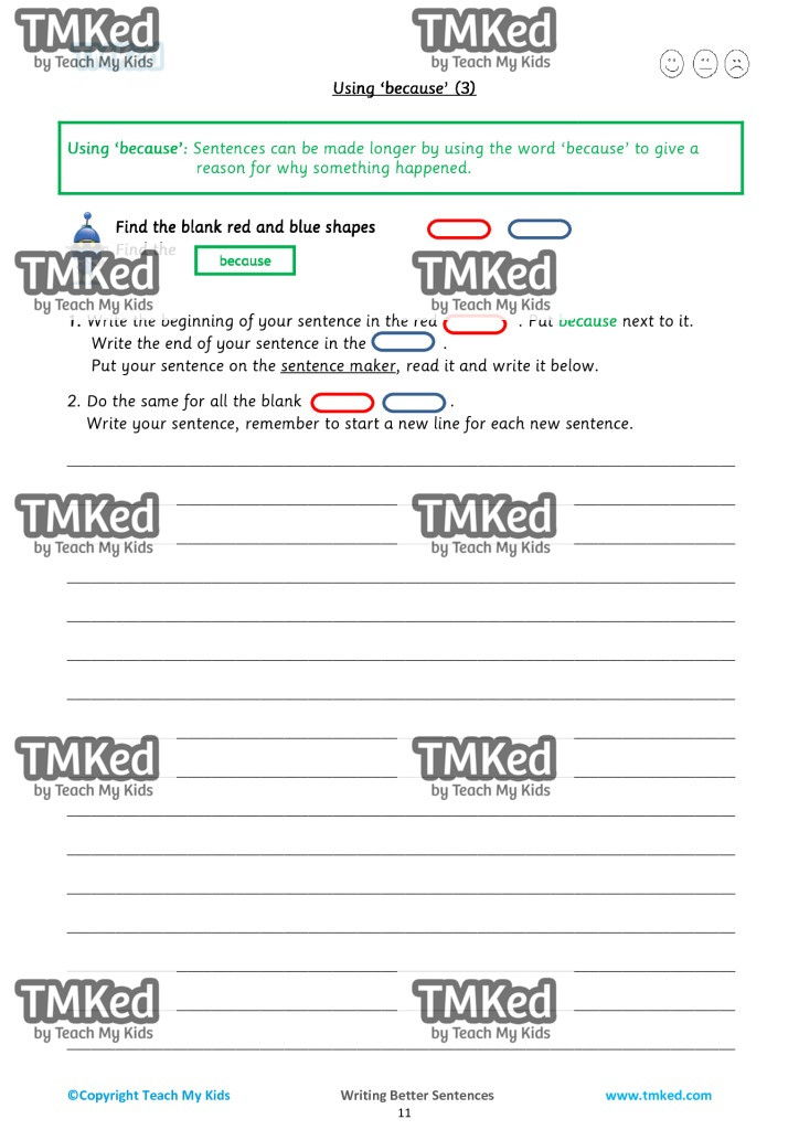 - Sentences 2 – beginning, because, end