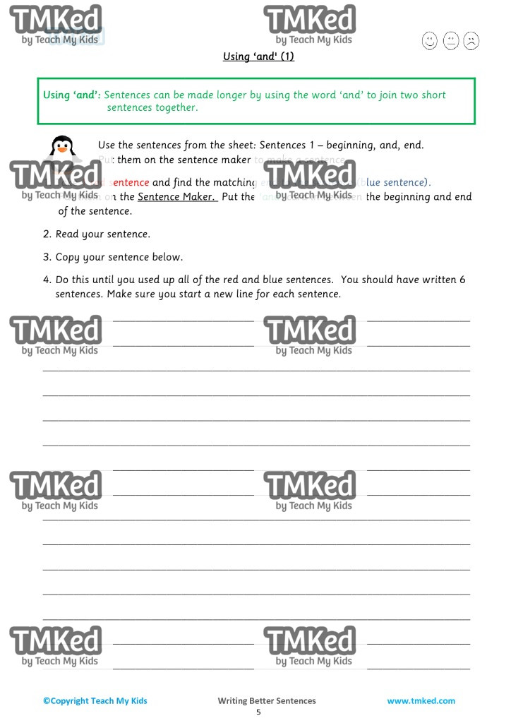 The activities within this workbook will help children read simple sentences. It will also help children write longer sentences and make them more interesting.